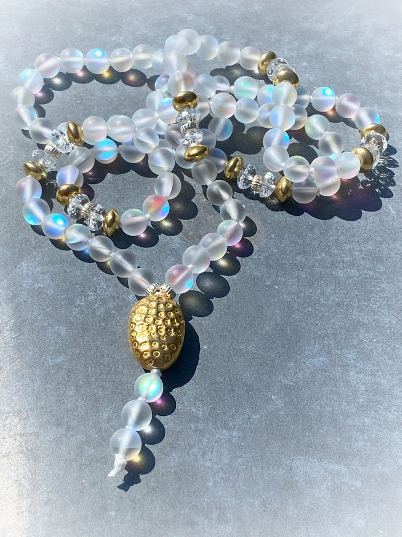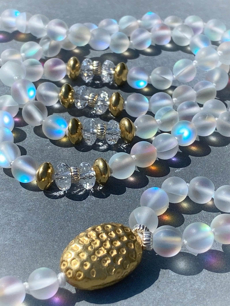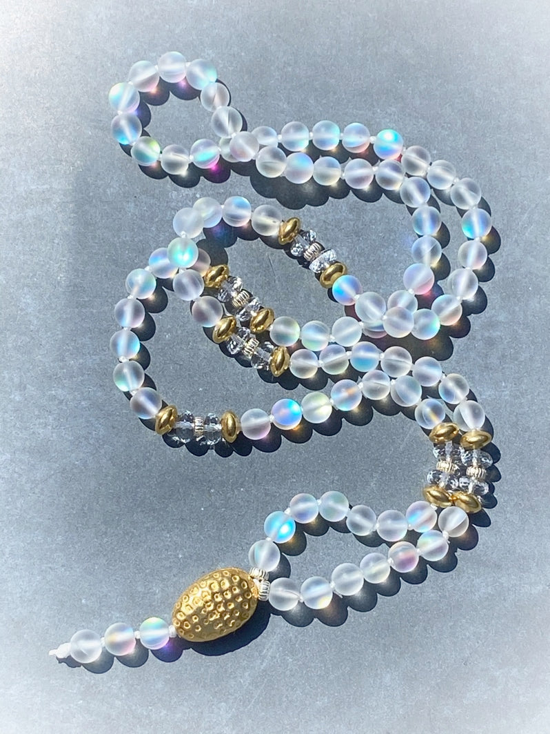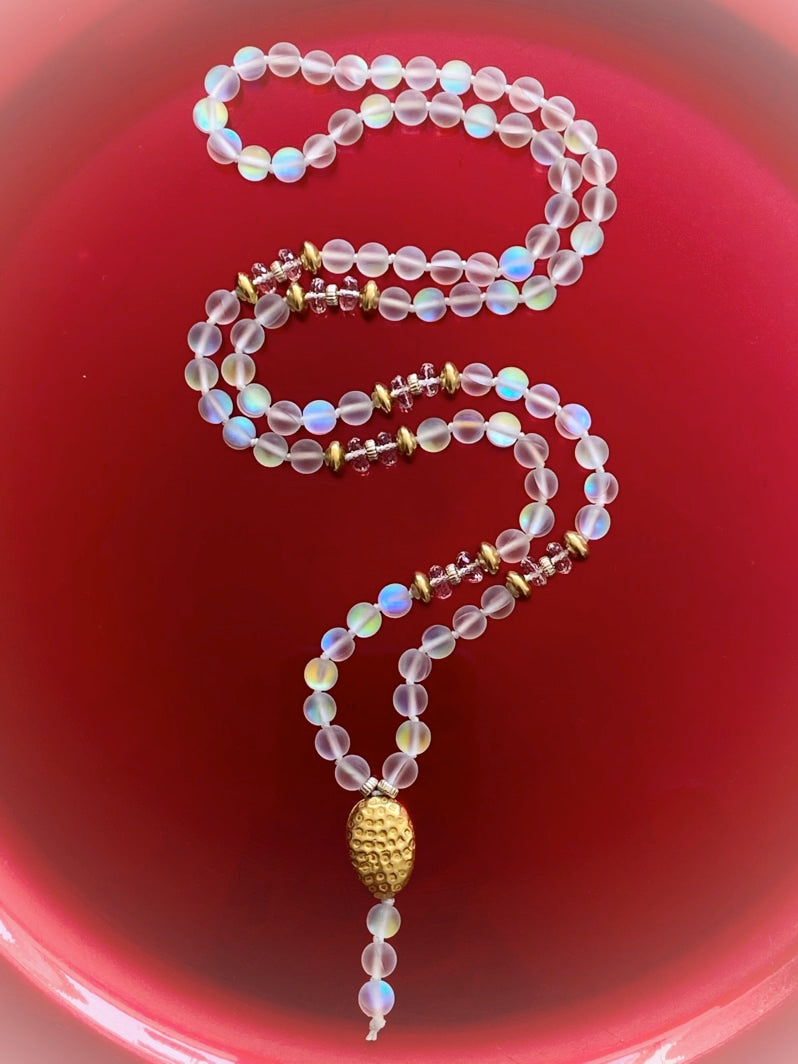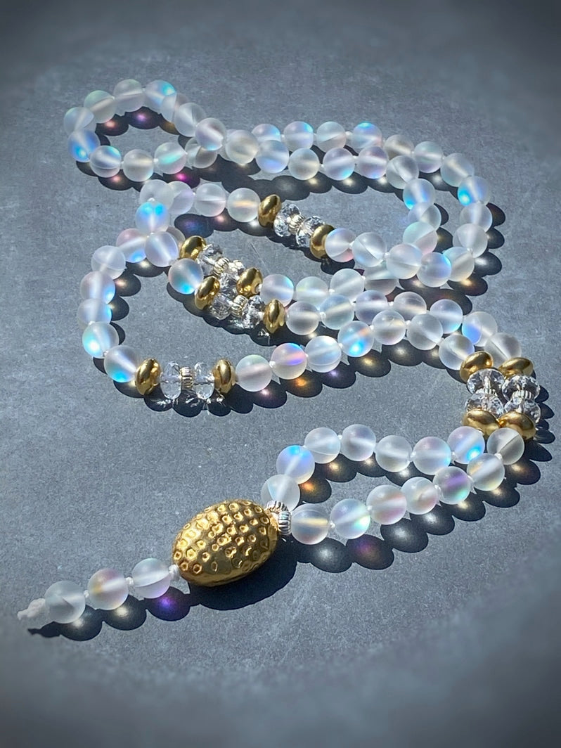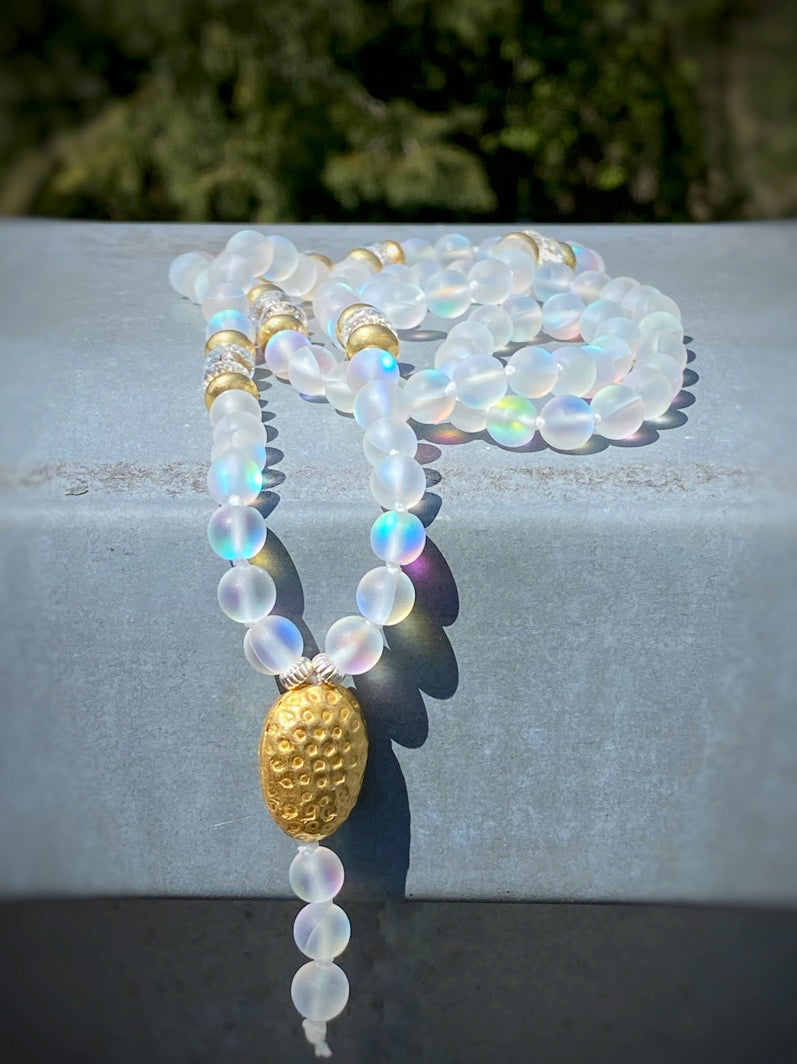 Schillernde Schönheit - Mala aus Regenbogen-Mondstein-Perlen