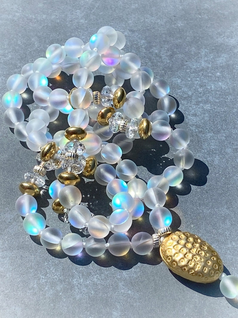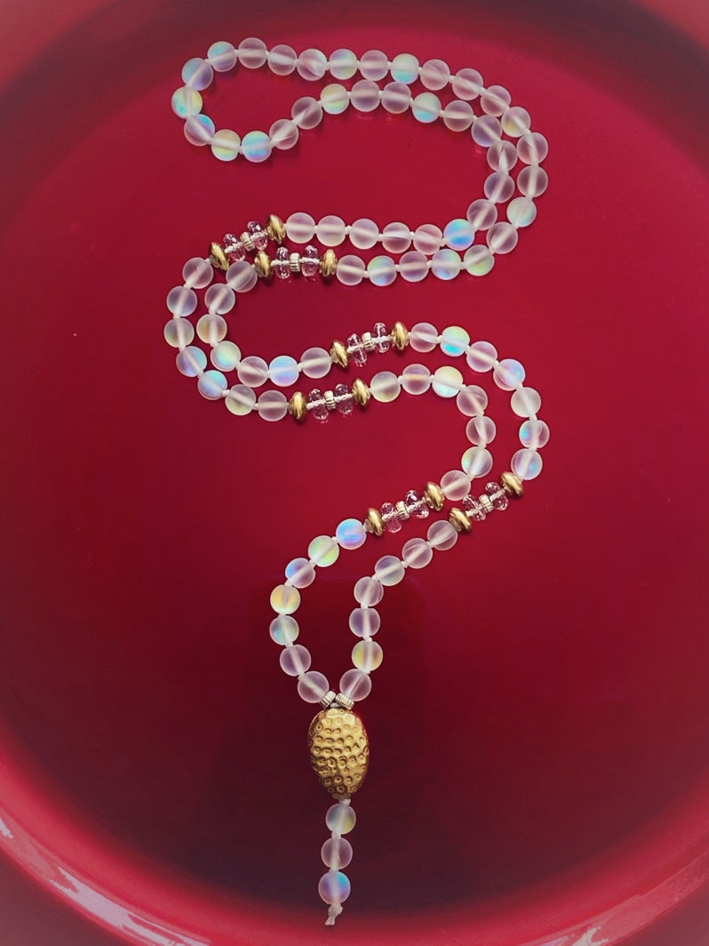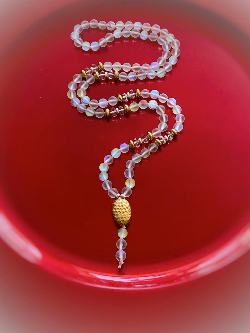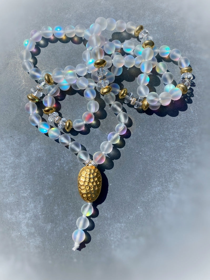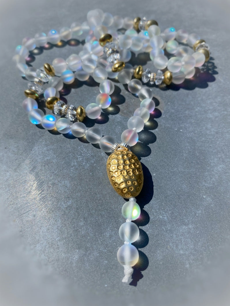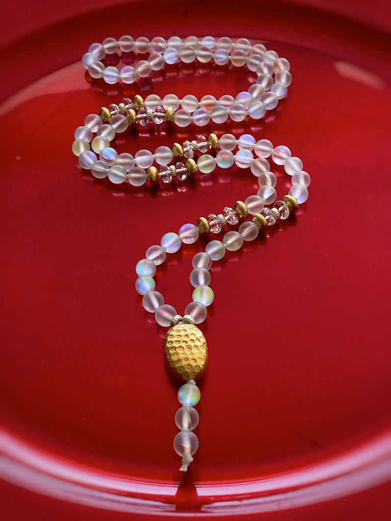 Schillernde Schönheit - Mala aus Regenbogen-Mondstein-Perlen