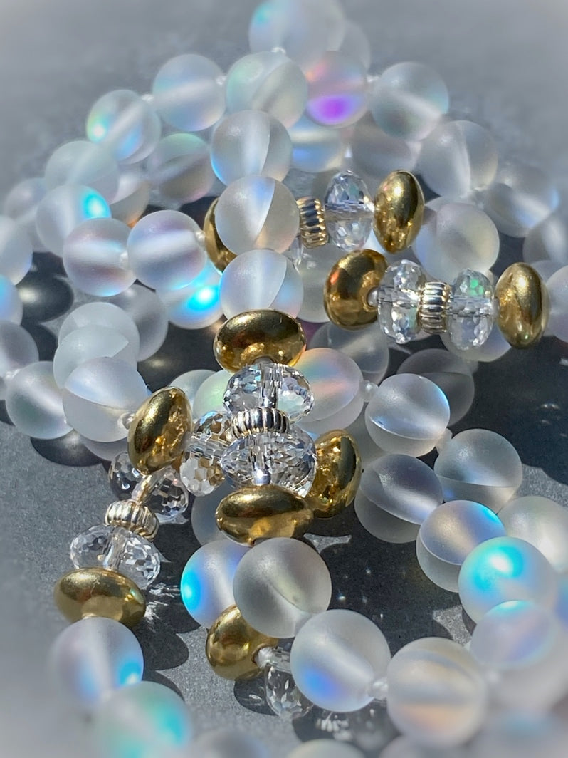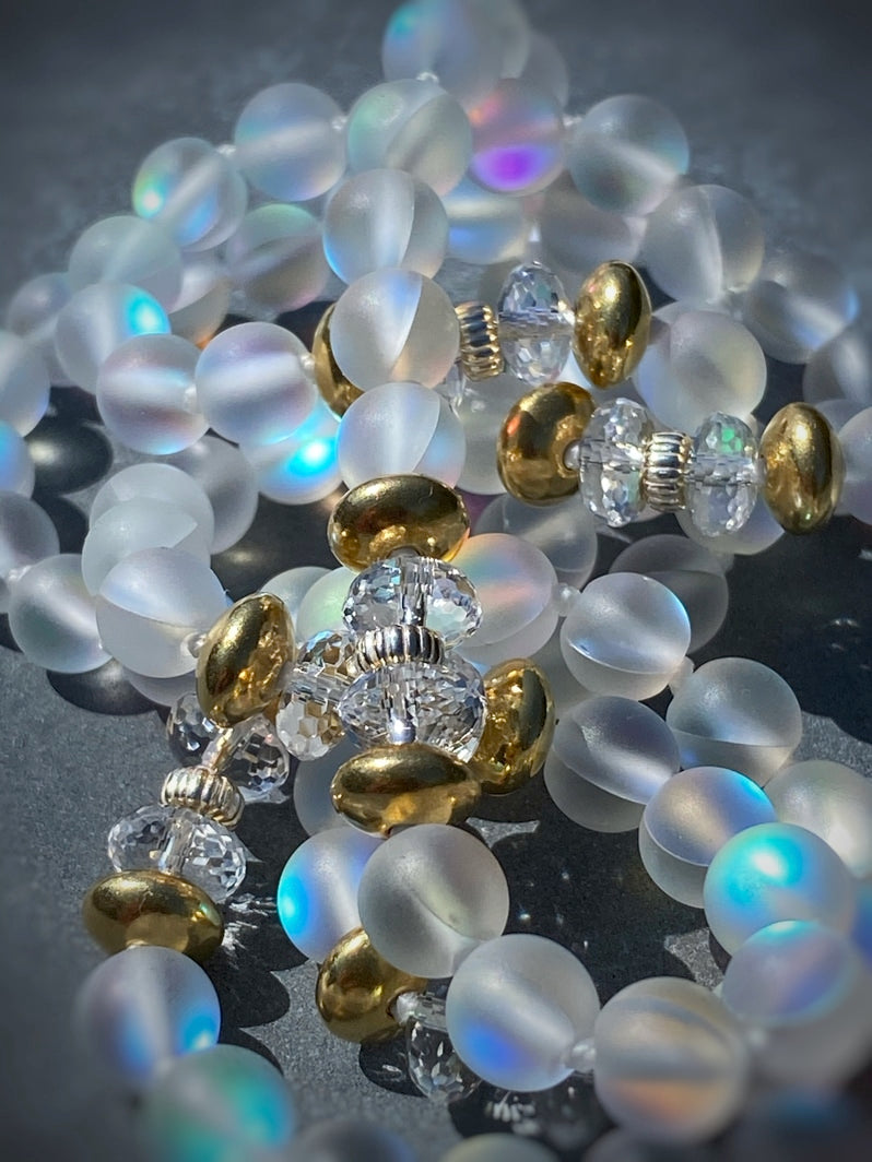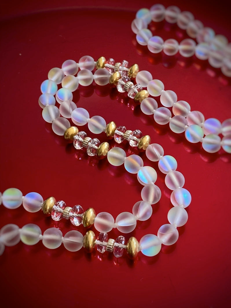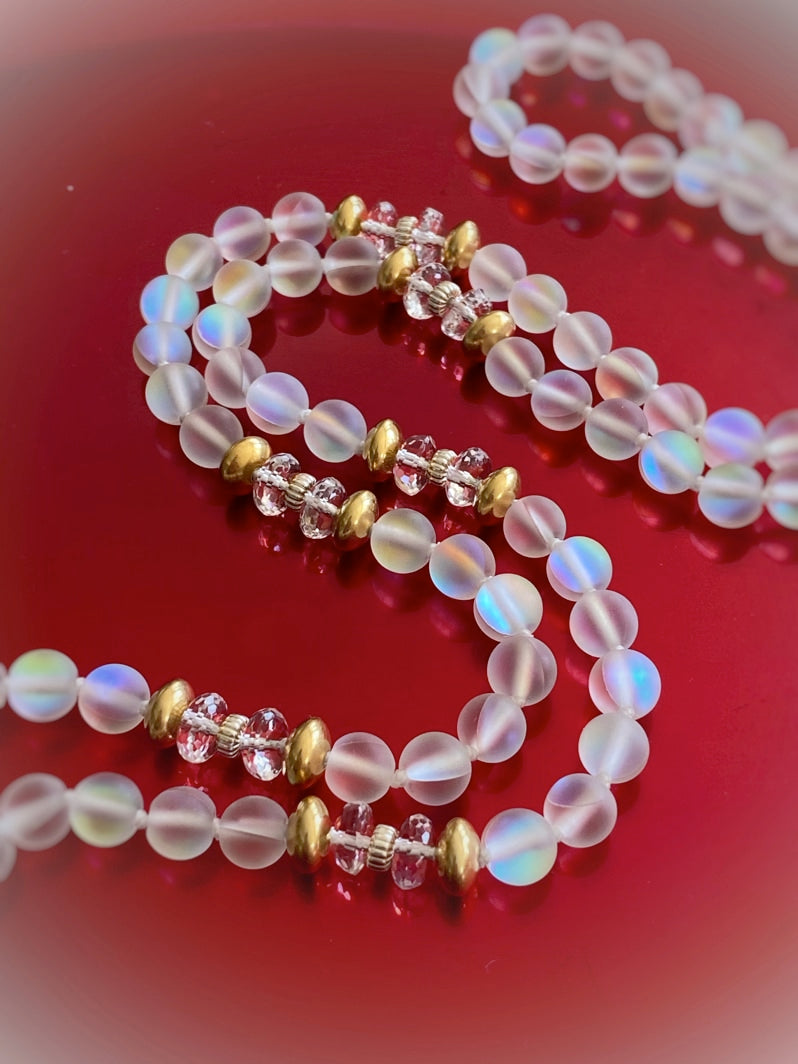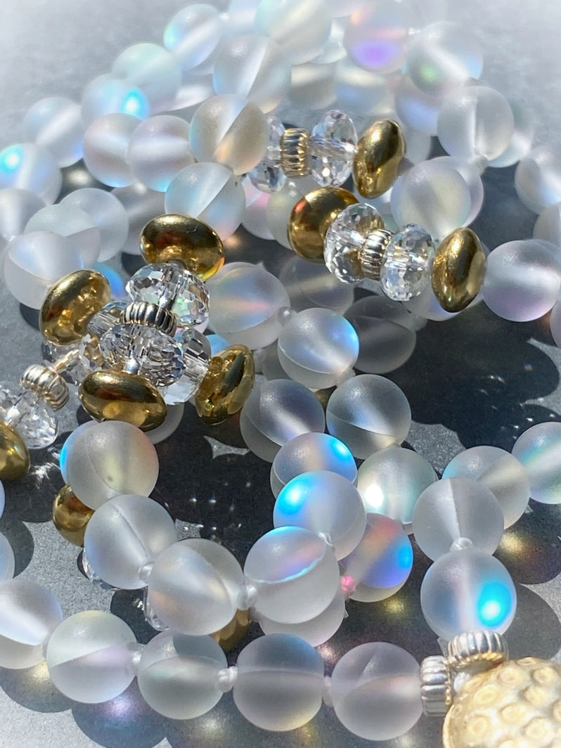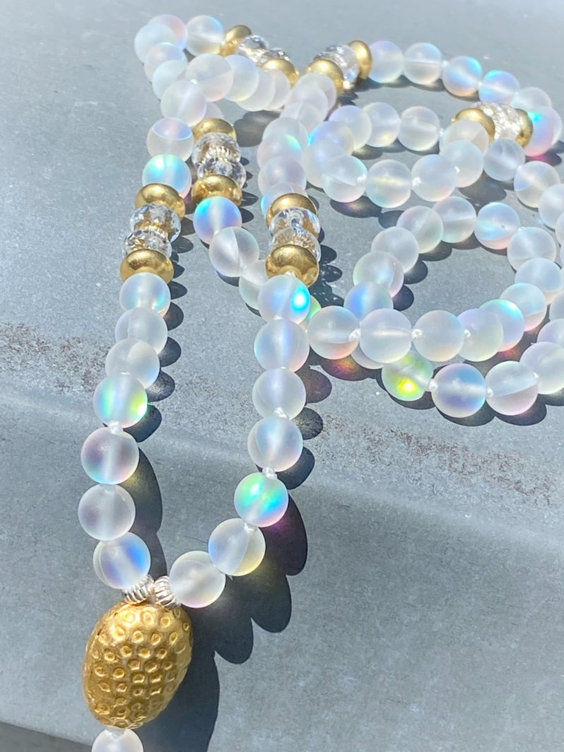 Schillernde Schönheit - Mala aus Regenbogen-Mondstein-Perlen