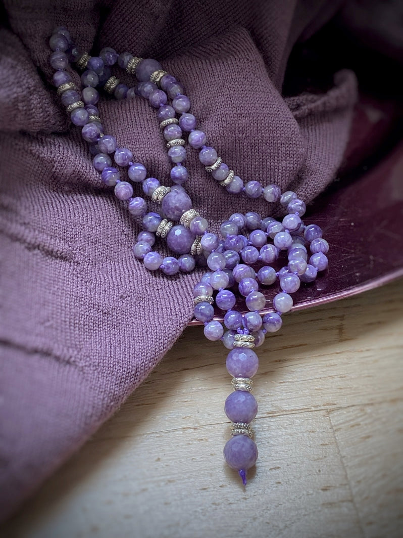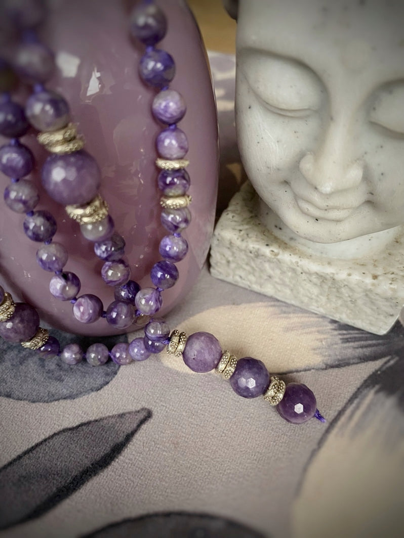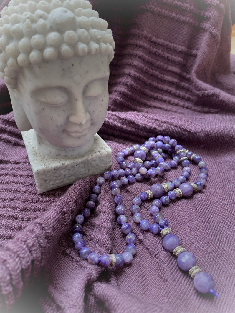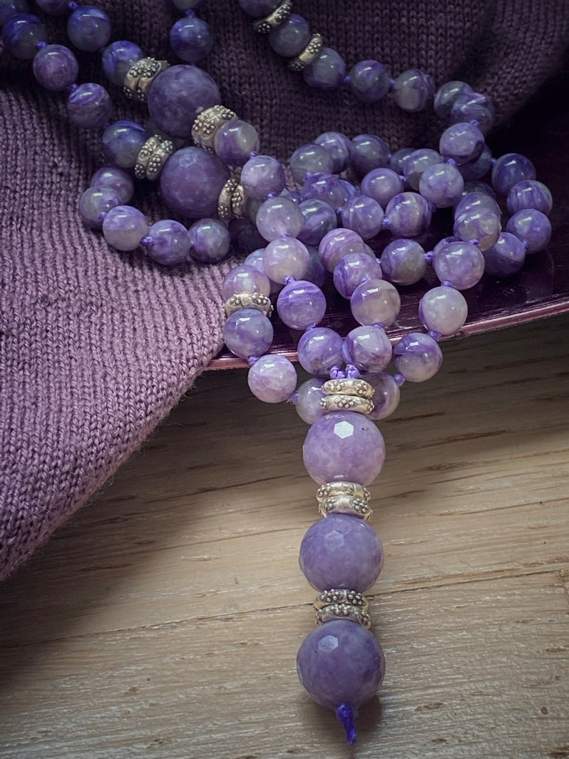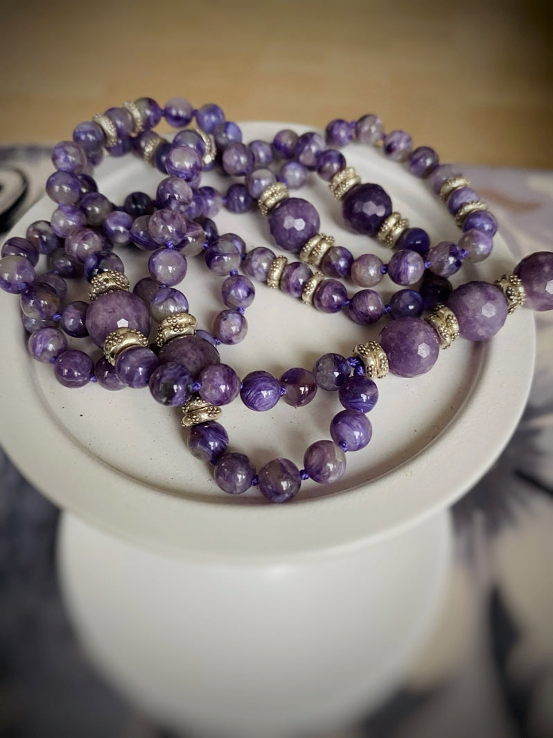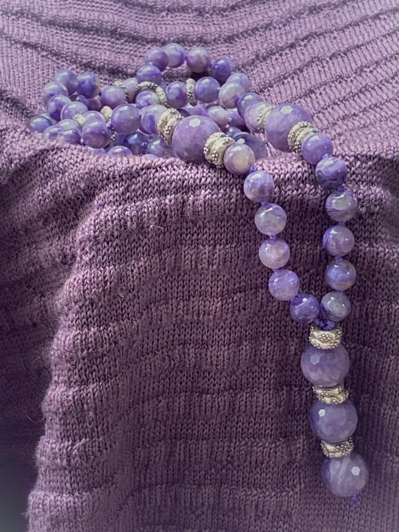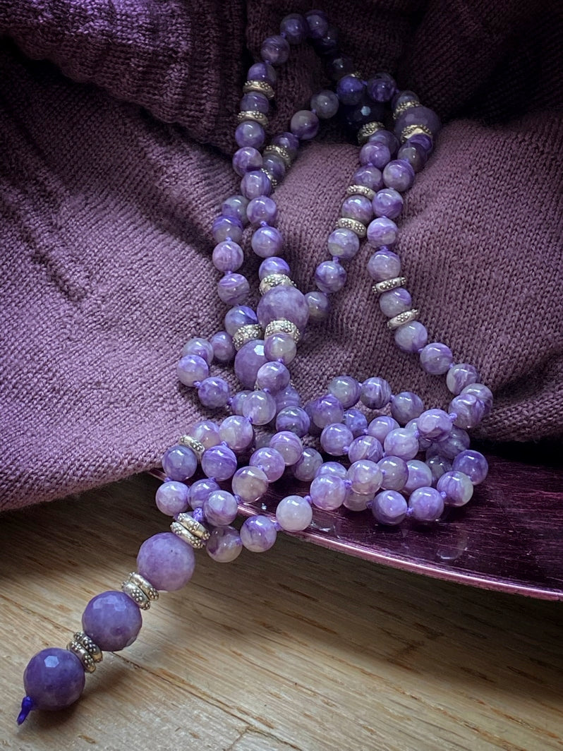 Wunderschöne Charoitperlen machen diese Mala edel...