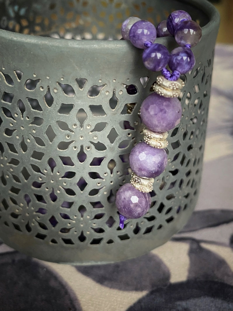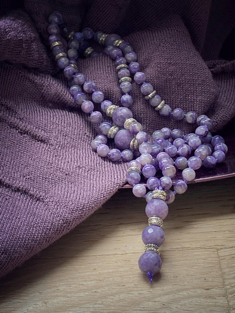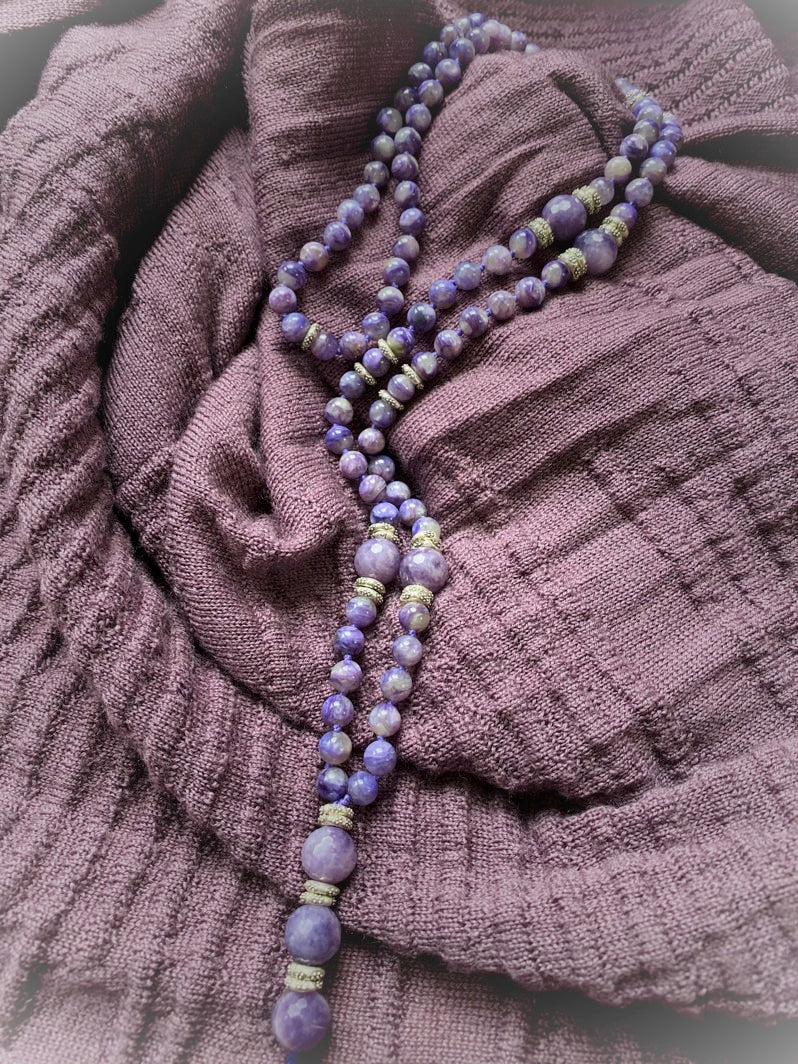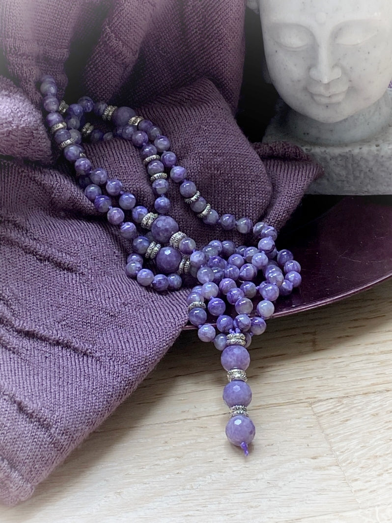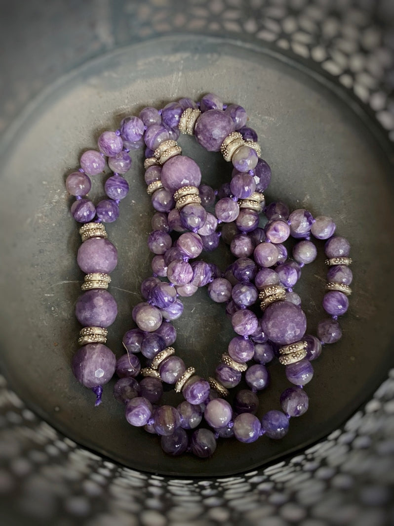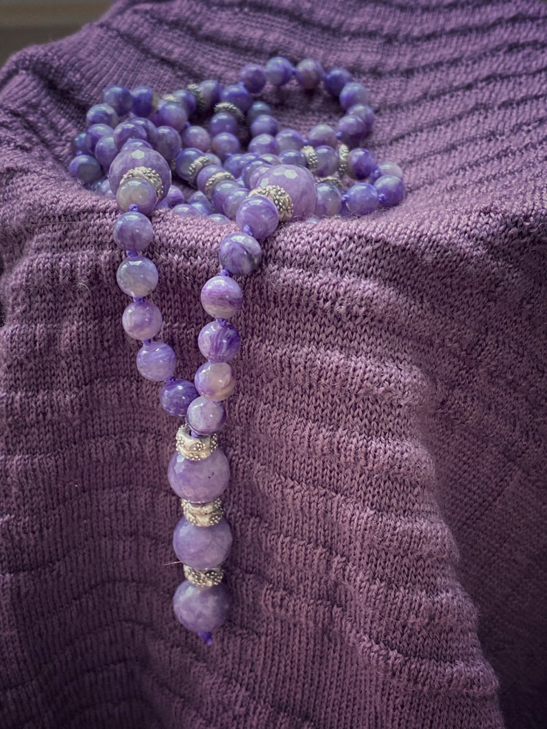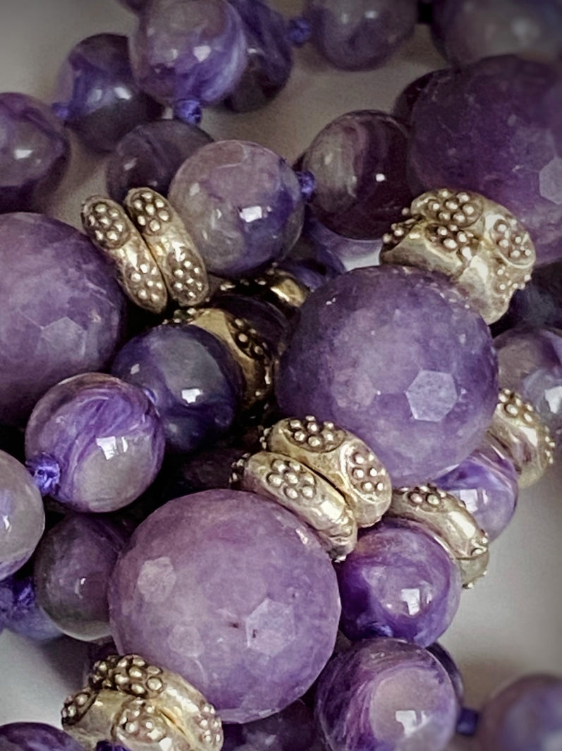 Wunderschöne Charoitperlen machen diese Mala edel...