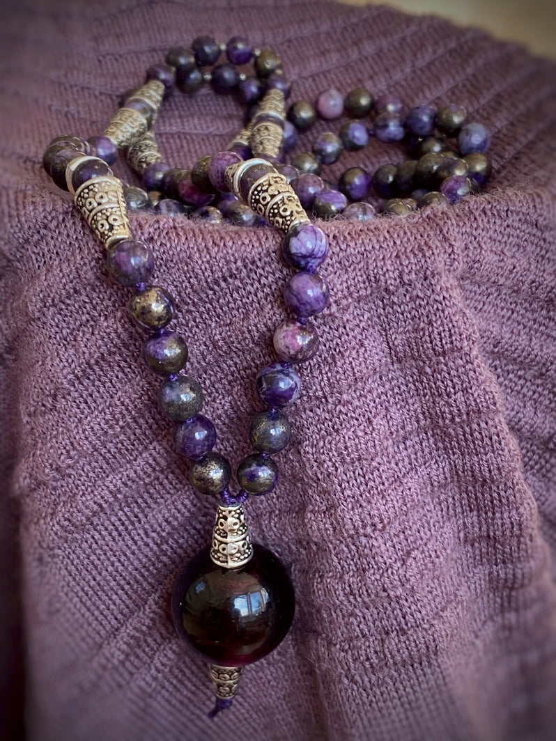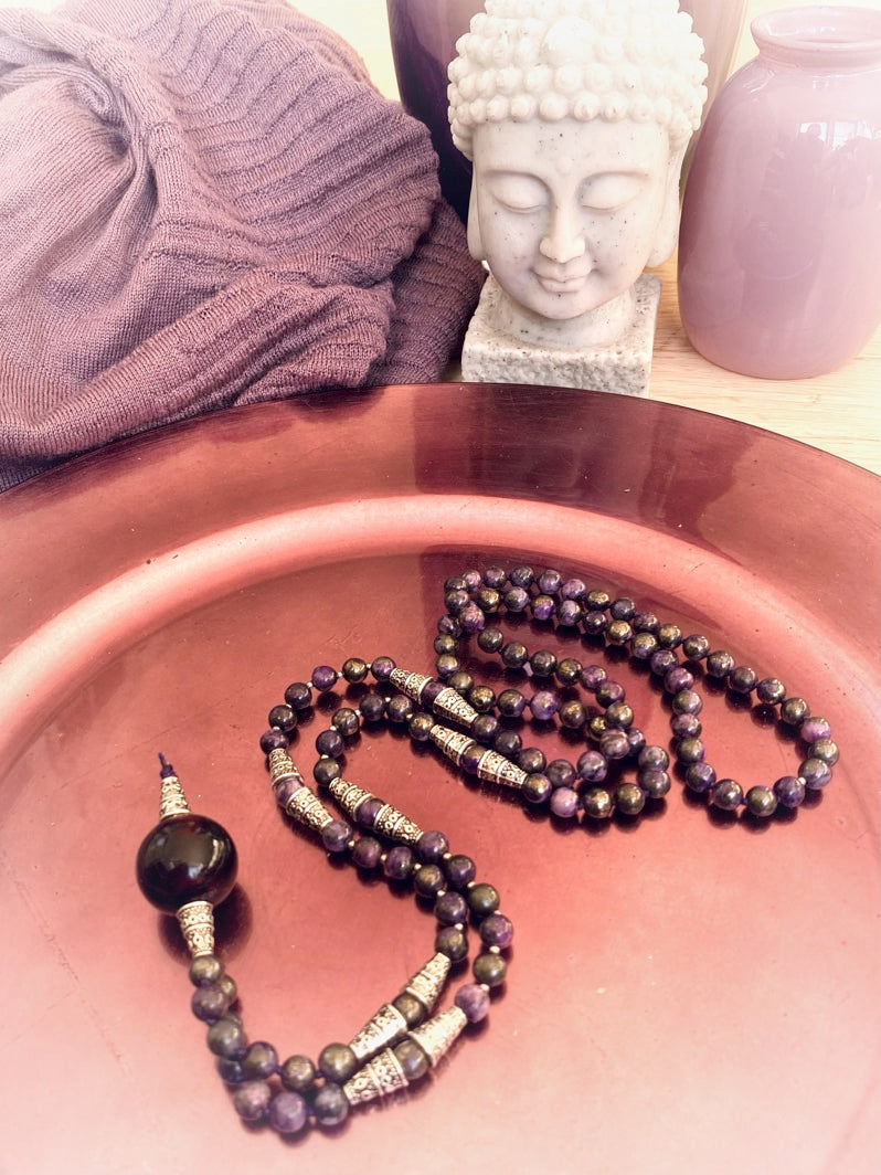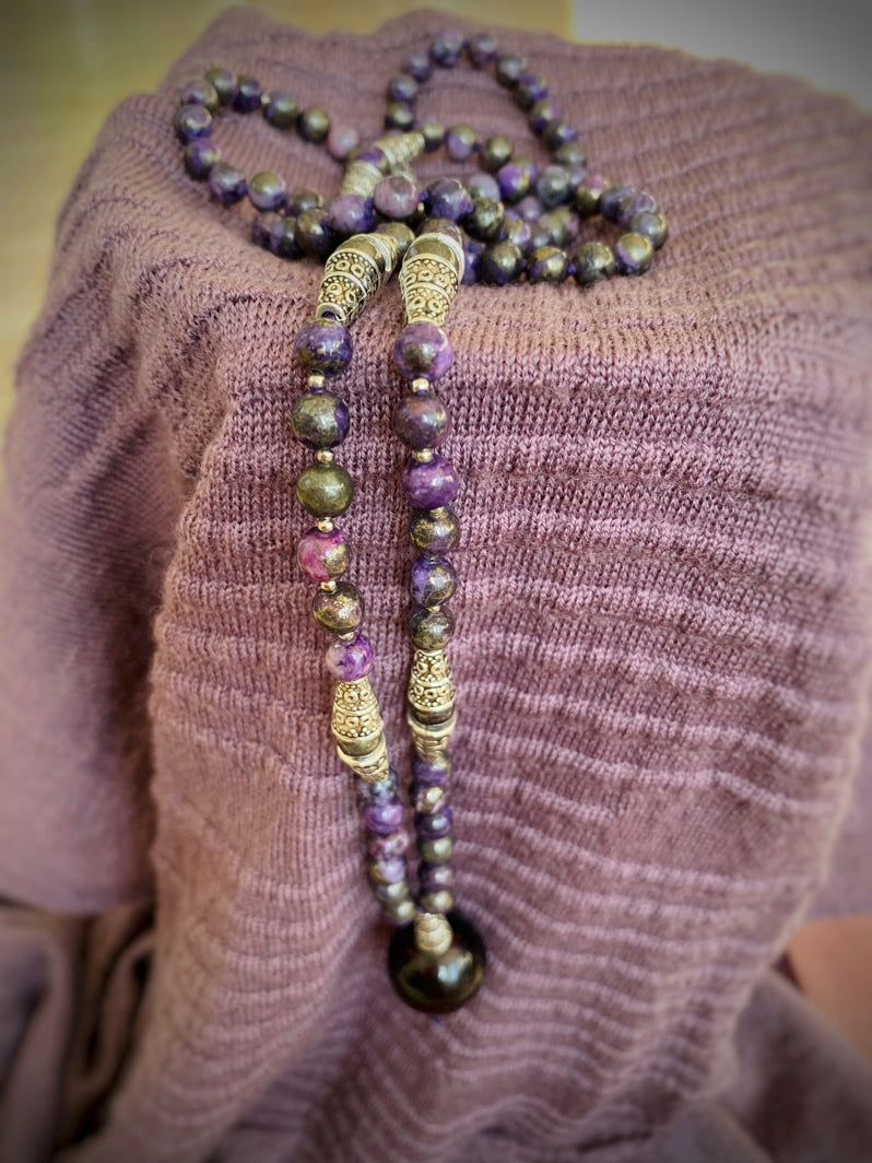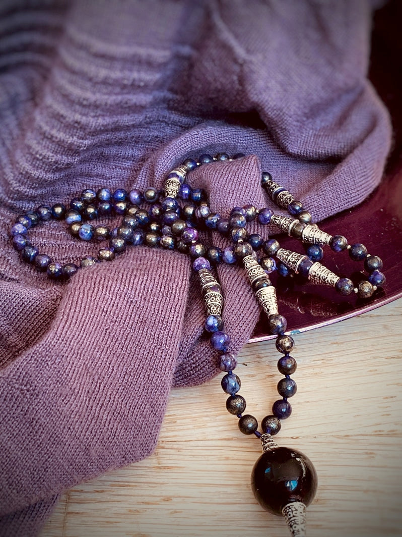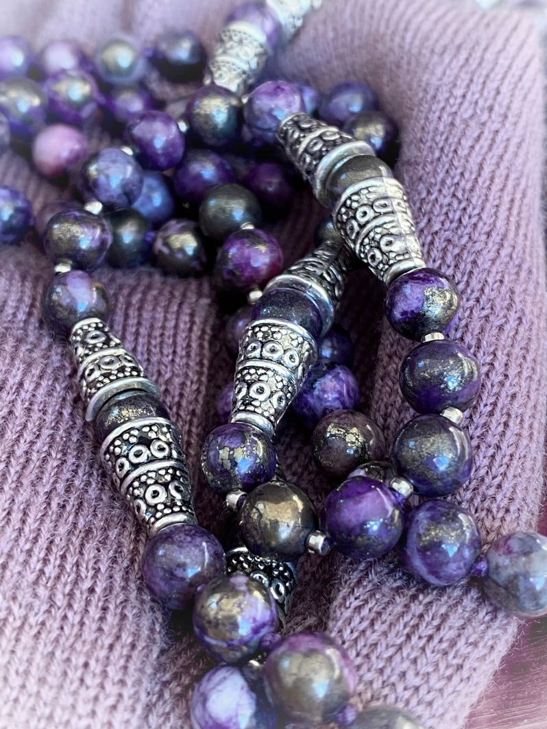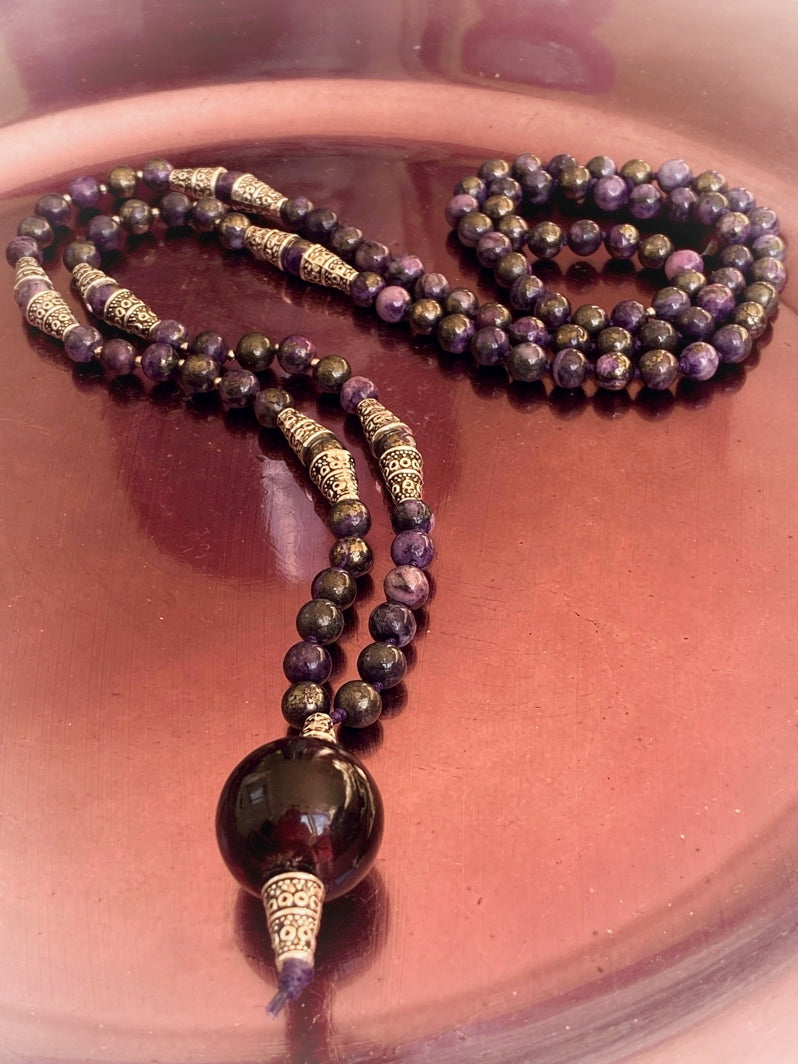 Dunkle Charoit-Pyrit-Perlen für eine Mala der Veränderung