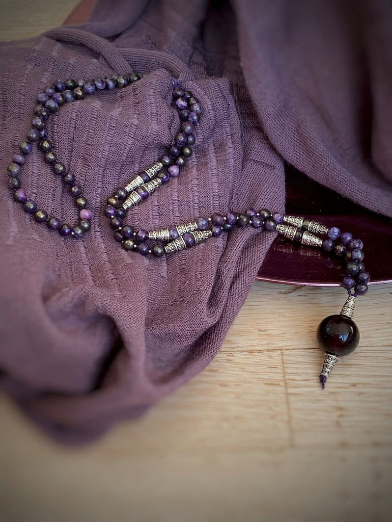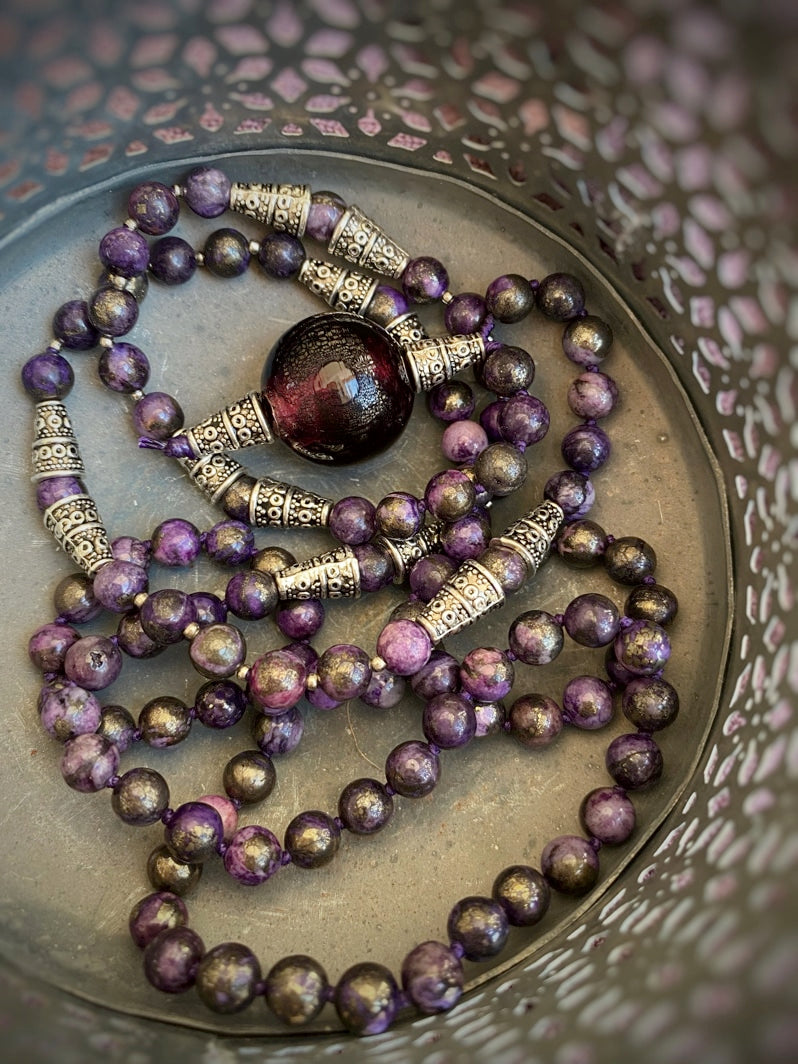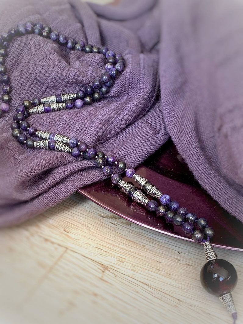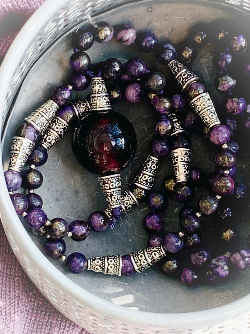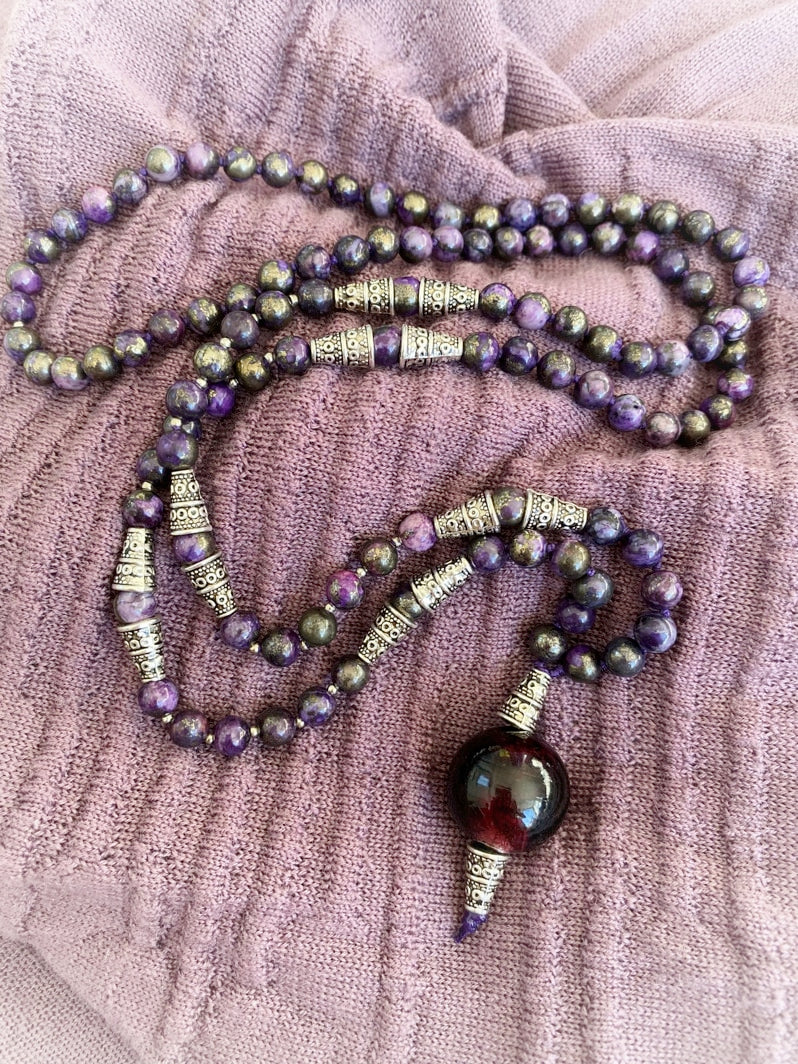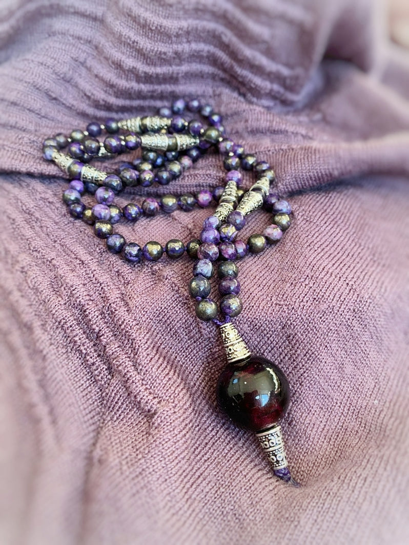 Dunkle Charoit-Pyrit-Perlen für eine Mala der Veränderung