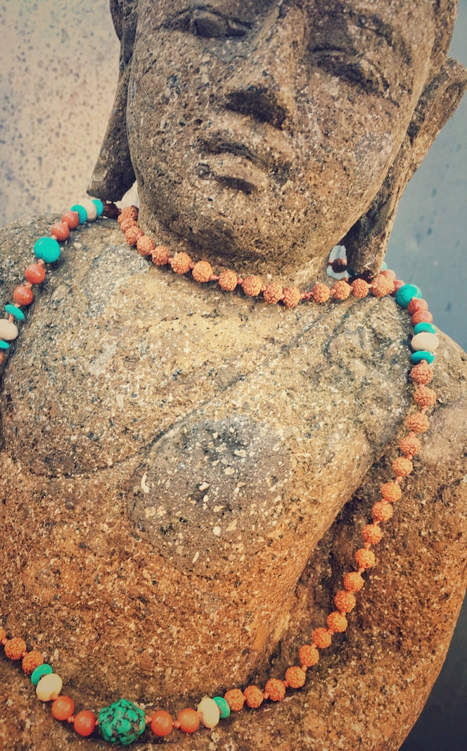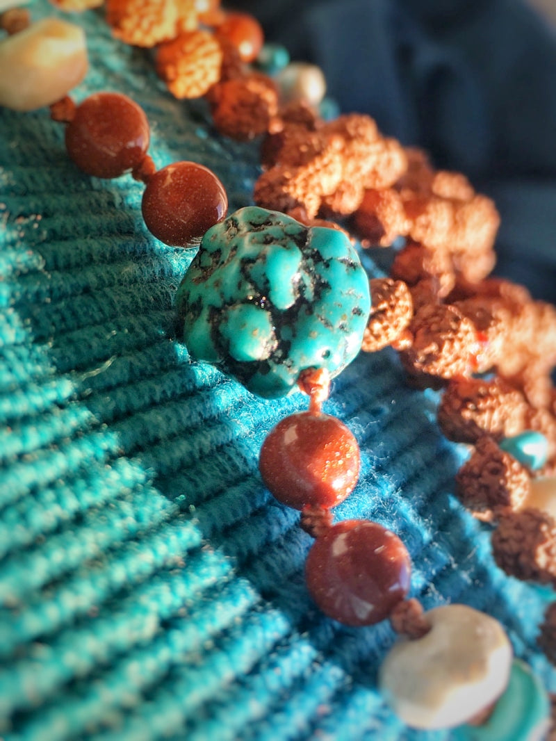 Perlen: Rudraksha, 6mm - Goldfluss 6mm, facettierte Speckstein-Rondelle, Türkis-Scheiben