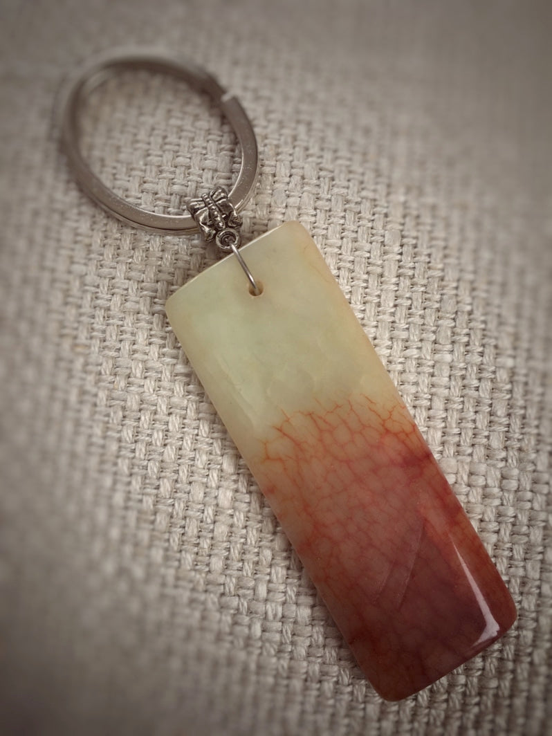 Silberfarbener ovaler Schlüsselring mit rechteckigem Speckstein-Anhänger aus Indien
