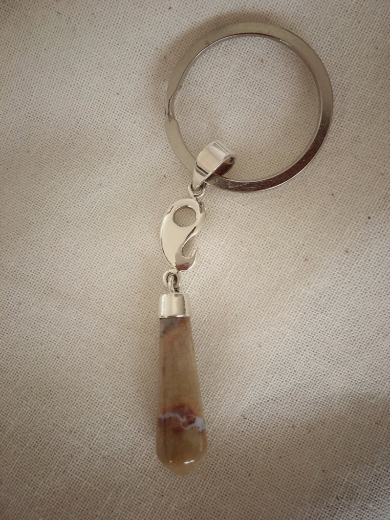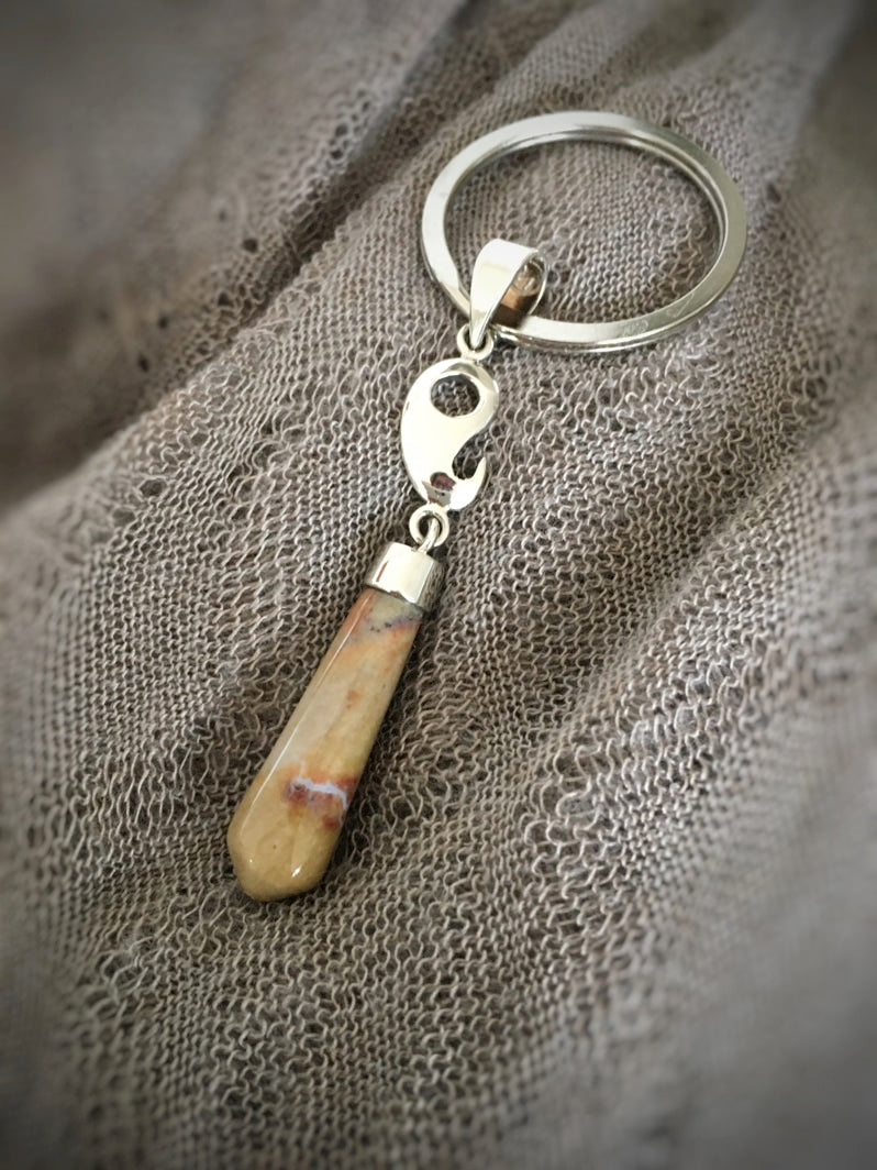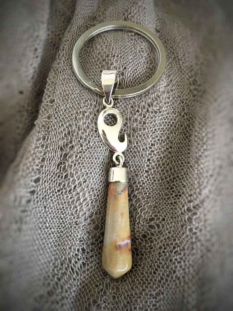 Schlüsselanhänger mit Jaspis-Anhänger in Echt-Silberfassung
